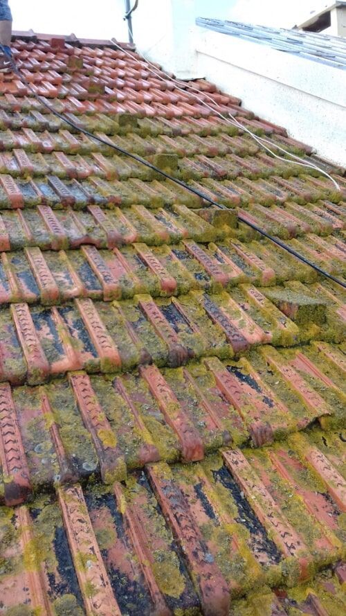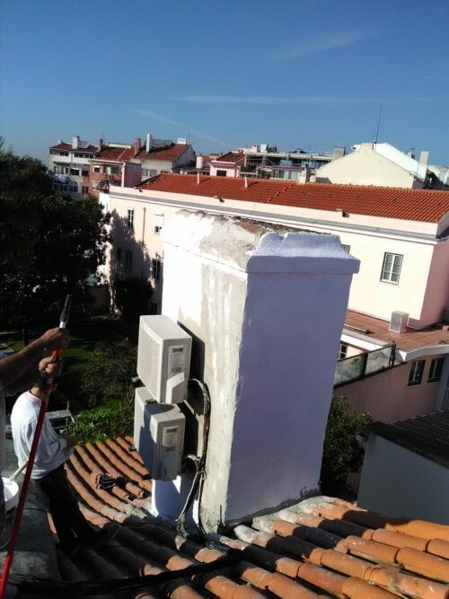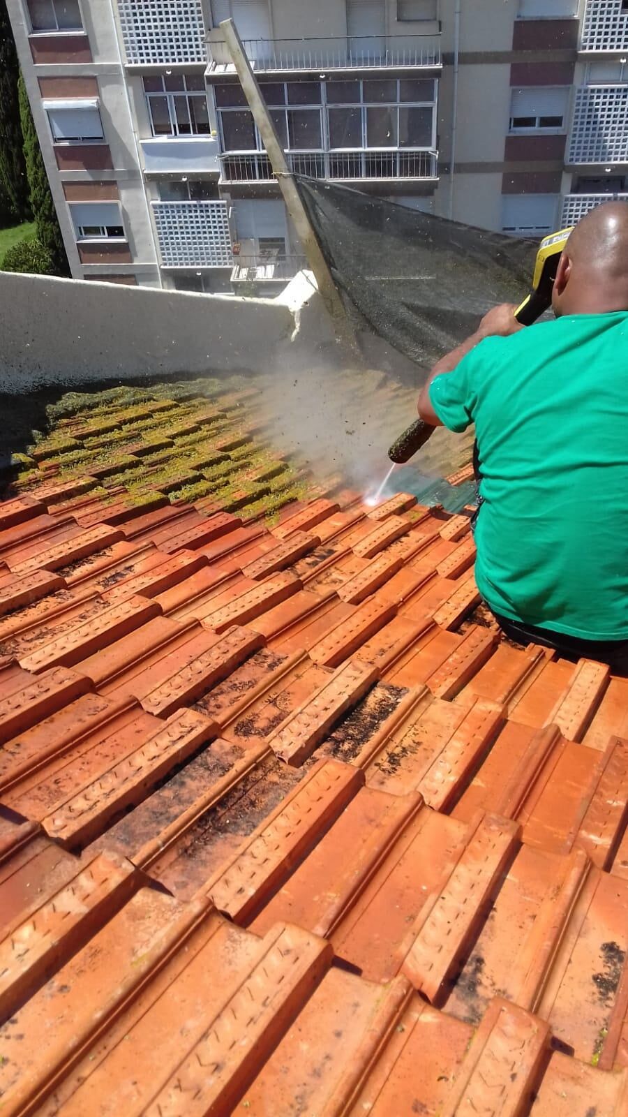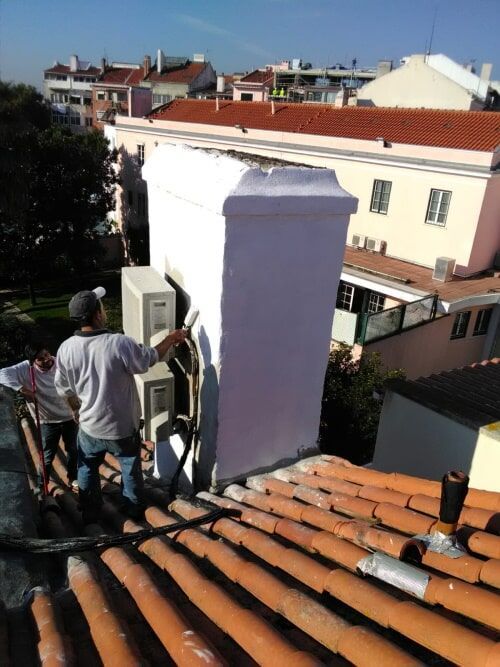 limpeza de algerozes e caleiras; resolução de infiltrações; mudança e colocação de telhas partidas ou em falta; isolamento térmico e acústico, manutenção preventiva de telhados e coberturas; encaminhamento das águas de chuva (instalação de algerozes e caleiras);